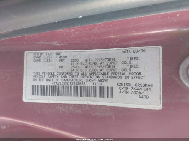 | VIN : 4TAVL52N1TZ213988 |