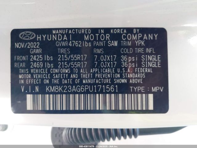 | VIN : KM8K23AG6PU171561 |