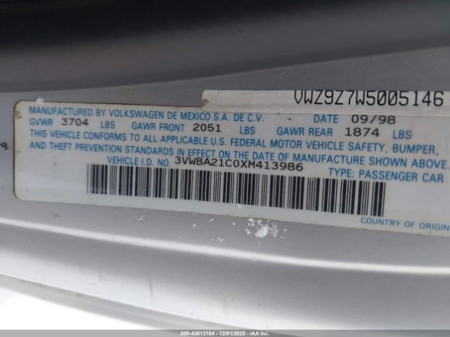 | VIN : 3VWBA21C0XM413986 |