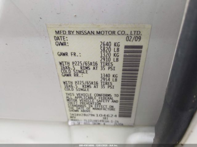 | VIN : 5N1BV28U79N104624 |