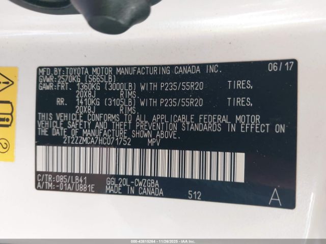 | VIN : 2T2ZZMCA7HC071752 |