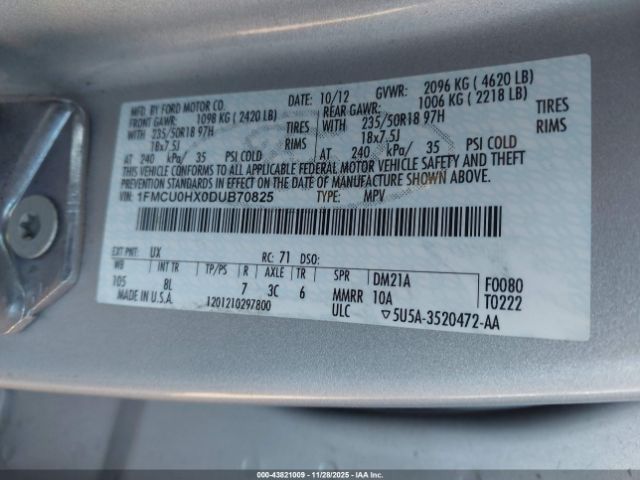 | VIN : 1FMCU0HX0DUB70825 |