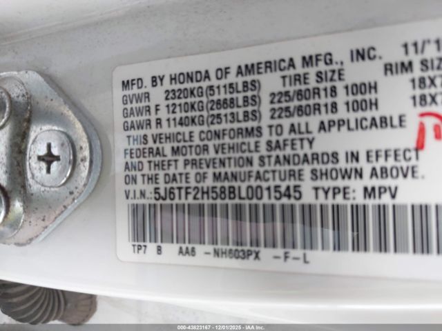 | VIN : 5J6TF2H58BL001545 |