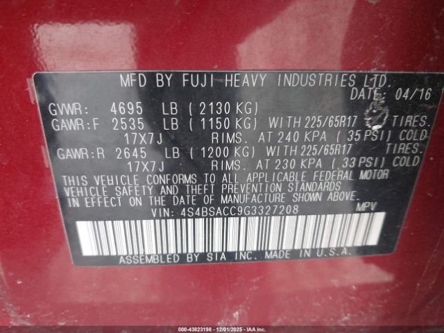 | VIN : 4S4BSACC9G3327208 |