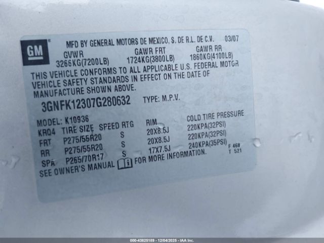 | VIN : 3GNFK12307G280632 |