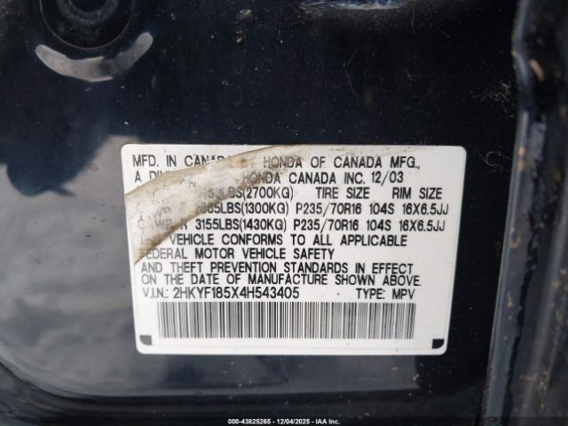 | VIN : 2HKYF185X4H543405 |