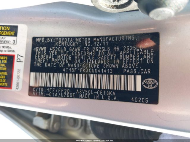 | VIN : 4T1BF1FKXCU041413 |