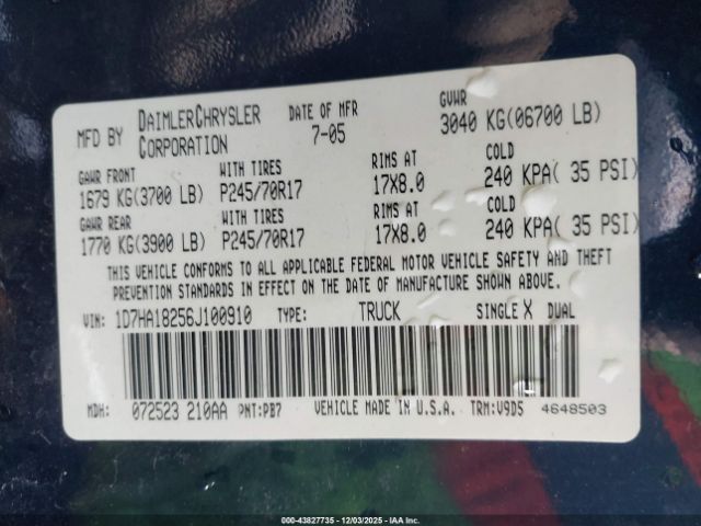 | VIN : 1D7HA18256J100910 |