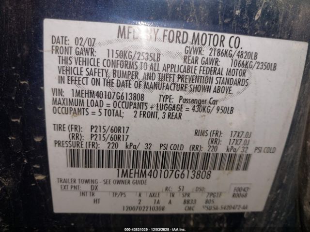 | VIN : 1MEHM40107G613808 |