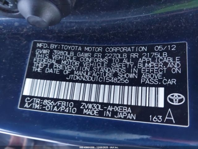 | VIN : JTDKN3DU1C1548256 |