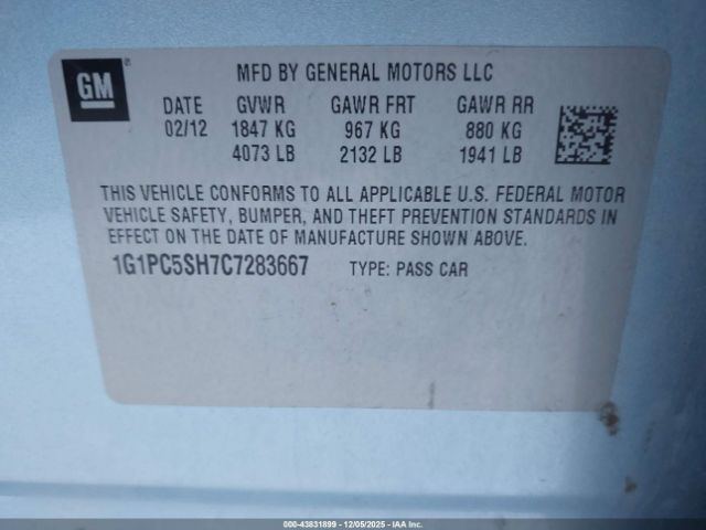 | VIN : 1G1PC5SH7C7283667 |