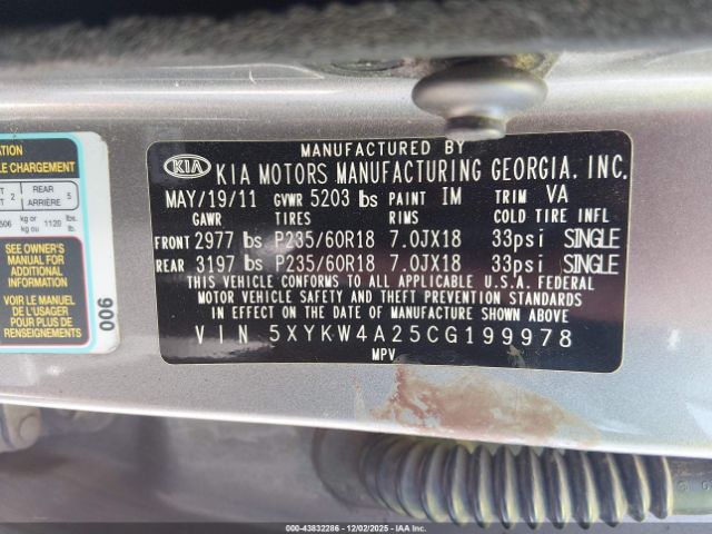 | VIN : 5XYKW4A25CG199978 |