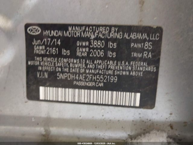 | VIN : 5NPDH4AE2FH552199 |