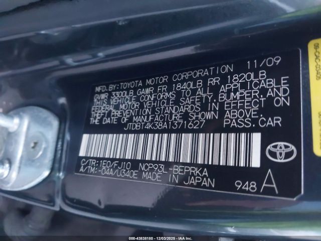 | VIN : JTDBT4K38A1371627 |
