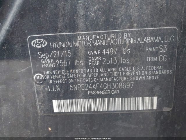 | VIN : 5NPE24AF4GH308697 |
