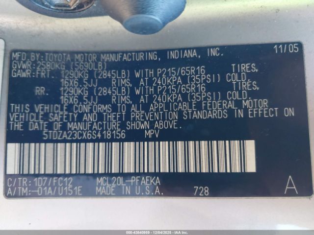 | VIN : 5TDZA23CX6S418156 |