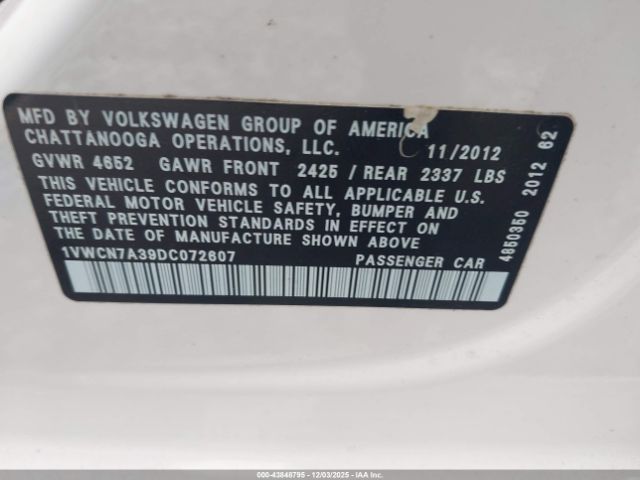 | VIN : 1VWCN7A39DC072607 |