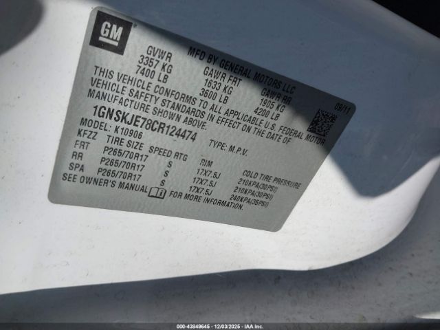 | VIN : 1GNSKJE78CR124474 |