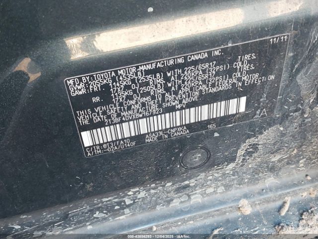 | VIN : 2T3BF4DVXBW167923 |