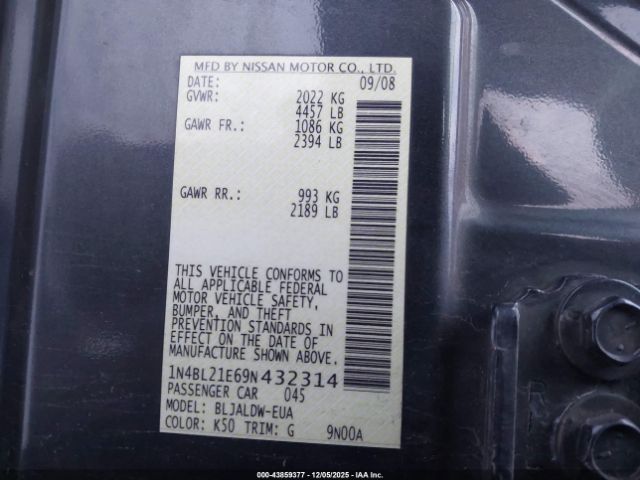 | VIN : 1N4BL21E69N432314 |