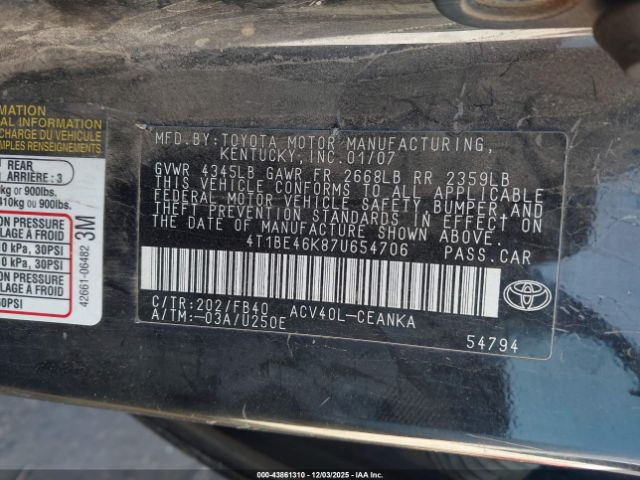 | VIN : 4T1BE46K87U654706 |