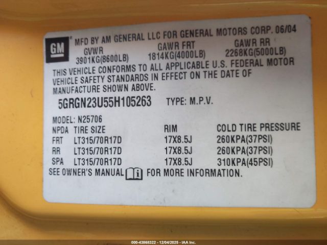 | VIN : 5GRGN23U55H105263 |